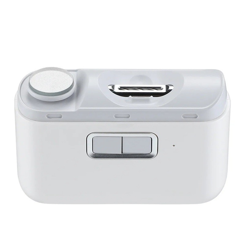 Aparador de unhas multifuncional com lima, polidor e lanterna. Carregamento via USB-C, funcionamento silencioso, seguro para crianças e adultos. Descrição completa