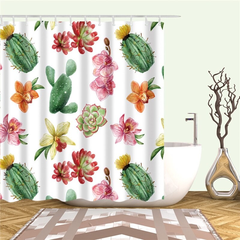 Cortina de chuveiro com cactos