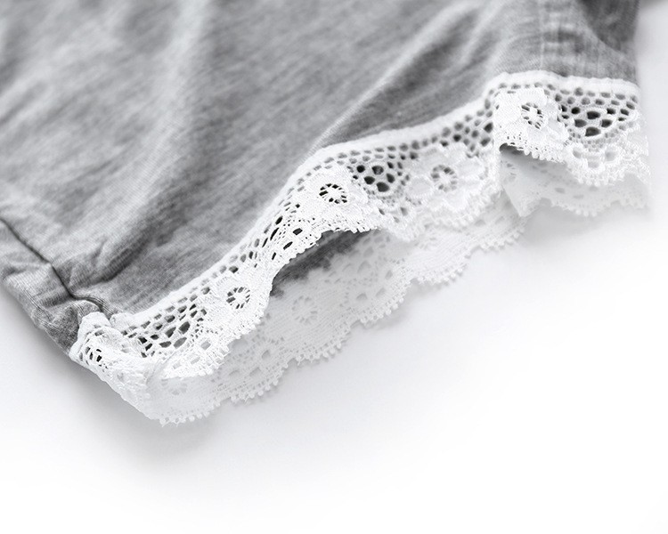 As pernas são adornadas com uma delicada renda.