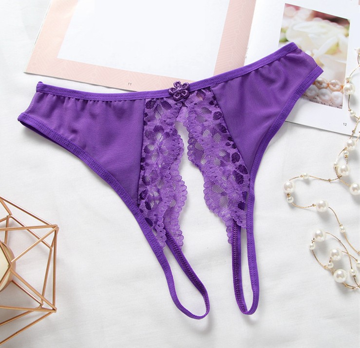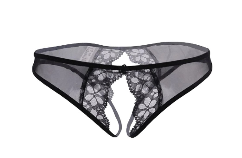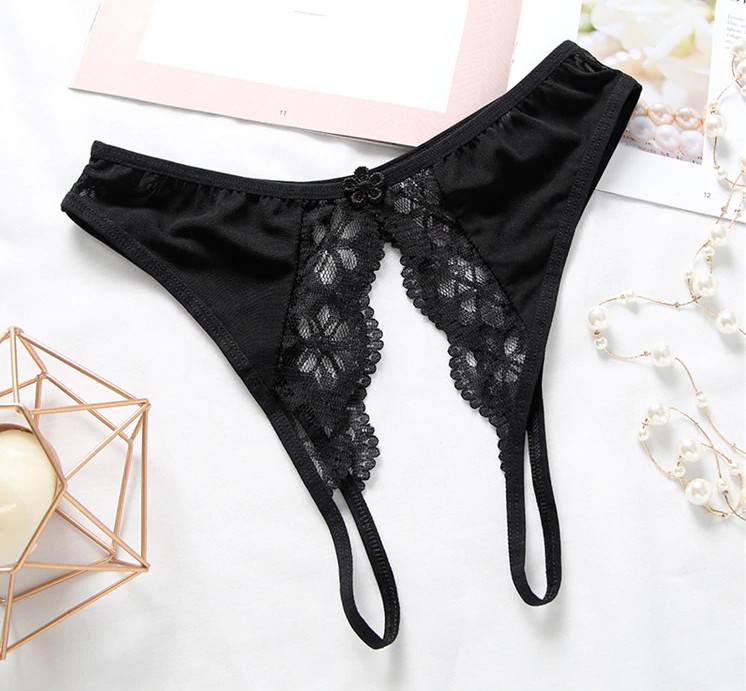 As cuecas são rendadas e têm uma abertura refinada no meio.