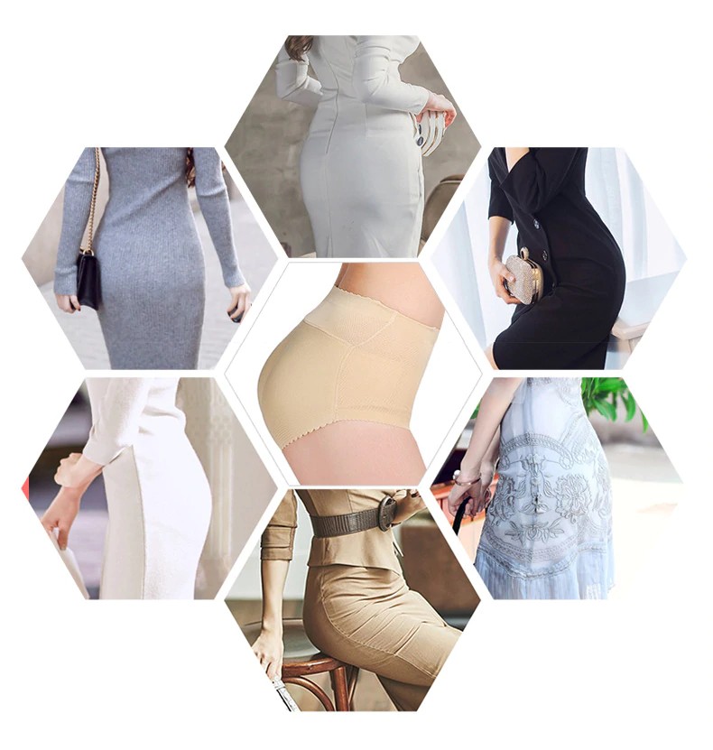 Cuecas modeladoras de cintura alta com efeito push-up levantam o bumbum e a barriga não ficará visível.