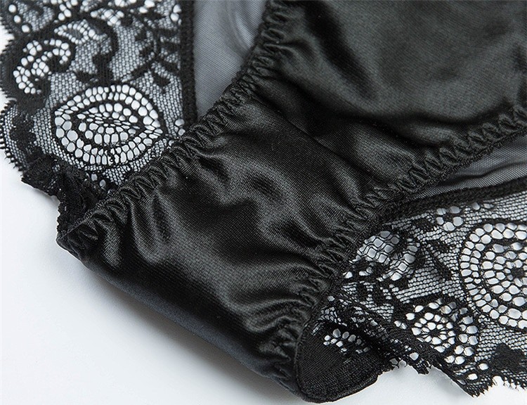 As cuecas com rendas delicadamente revelam o seu rabo.