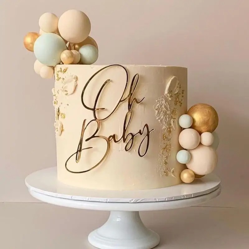 Queres dar ao bolo um toque estiloso e pessoal? Esta elegante decoração com inscrição é a escolha ideal para embelezar o bolo de boas-vindas ao bebé ou para um baby shower. Graças ao seu design elaborado, complementa perfeitamente toda a festa.