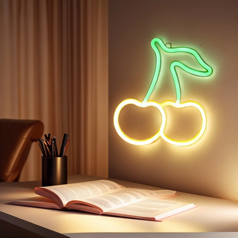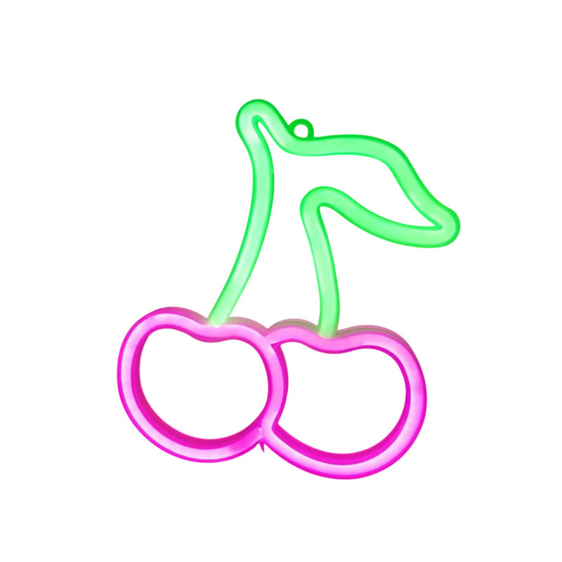 Esta decoração oferece uma maneira simples de dar personalidade e um toque luminoso ao ambiente. A iluminação neon é energeticamente eficiente e tem uma longa vida útil, o que a torna uma ótima escolha para uso diário. Graças à alimentação flexível, não é necessário estar preso a uma tomada, aumentando a versatilidade de colocação. O design da cereja é marcante, mas ao mesmo tempo adorável, e combina com diferentes tipos de interiores. Este acessório luminoso é ideal também como um presente original para amigos ou família.