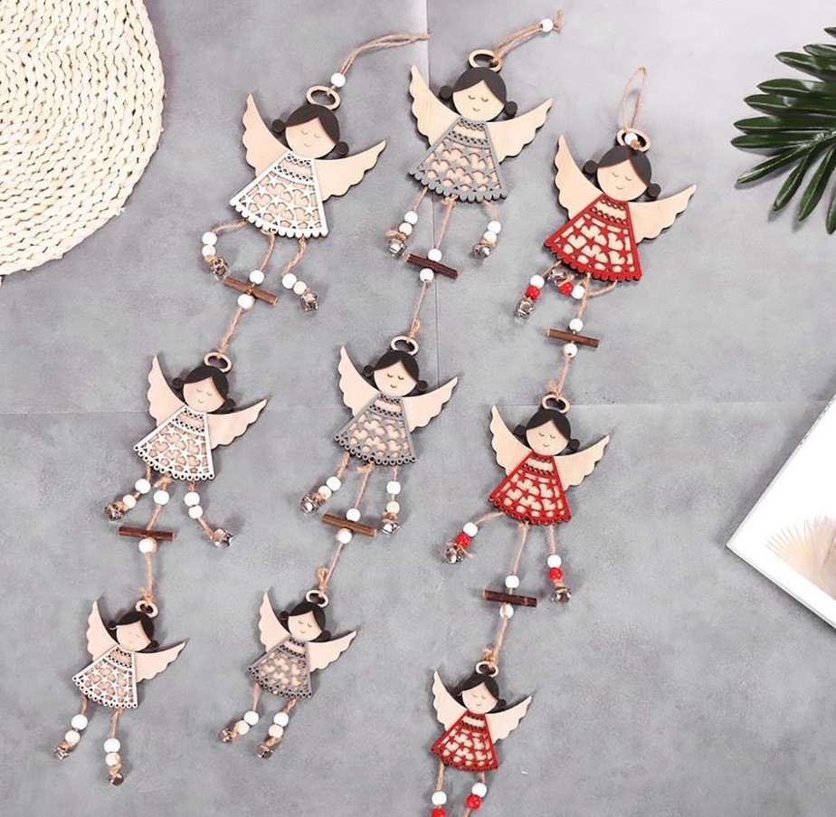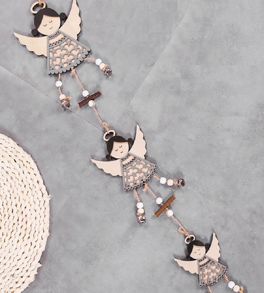 Decoração de Natal em madeira para pendurar com três anjos.