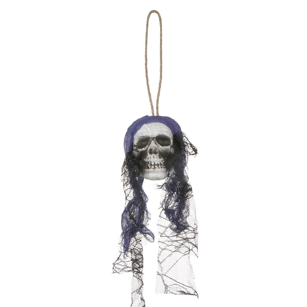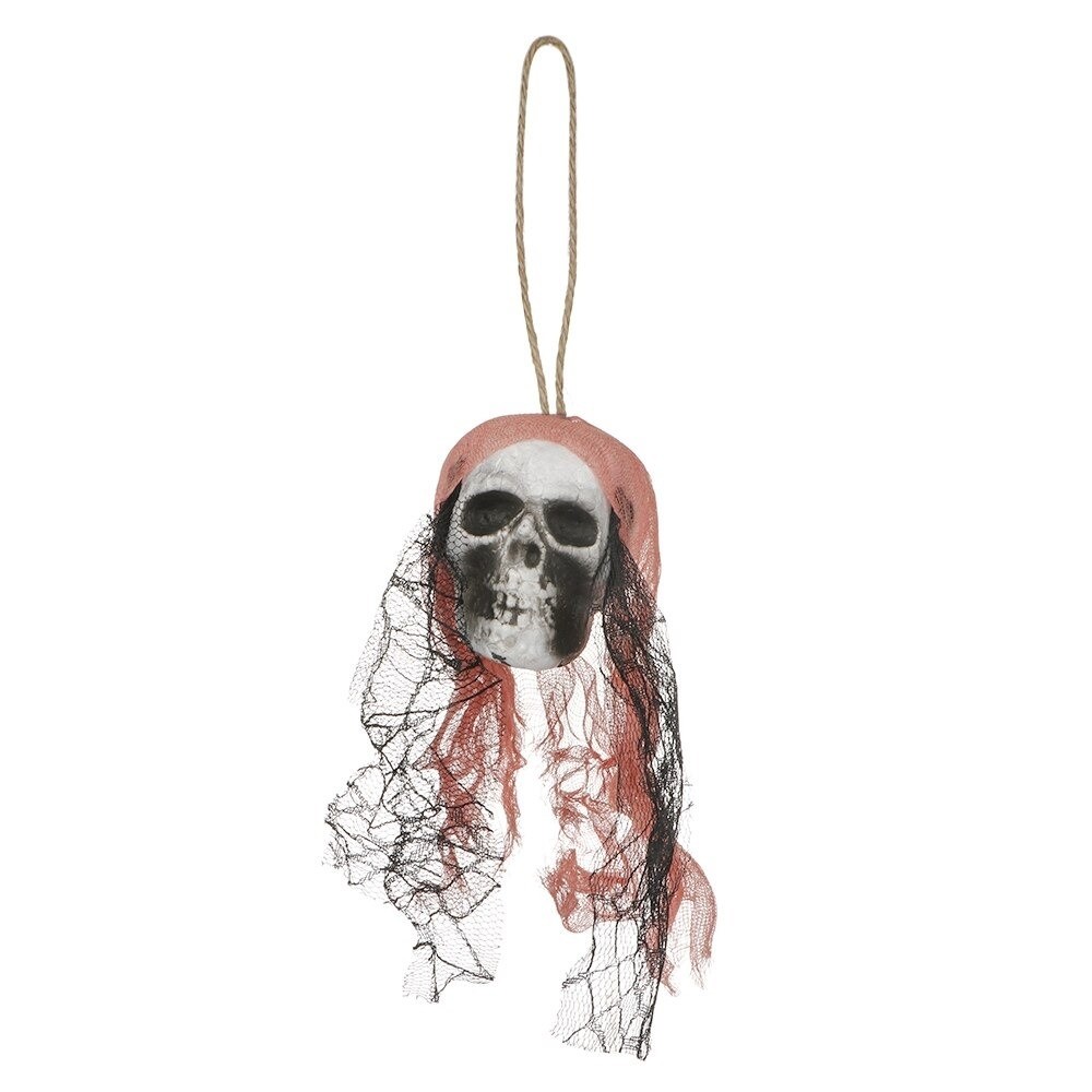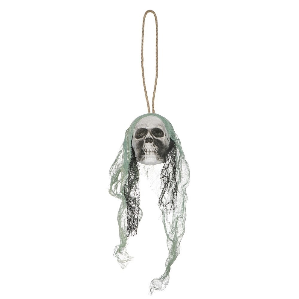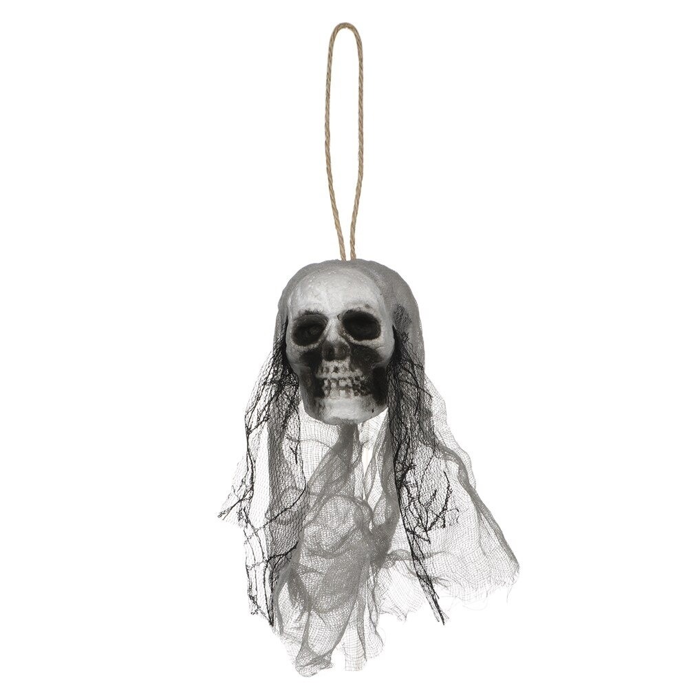 Decore a sua festa de Halloween com uma caveira suspensa. Caveira no estilo da noiva morta com véu. Comprimento total 36 cm. O material plástico garante boa qualidade