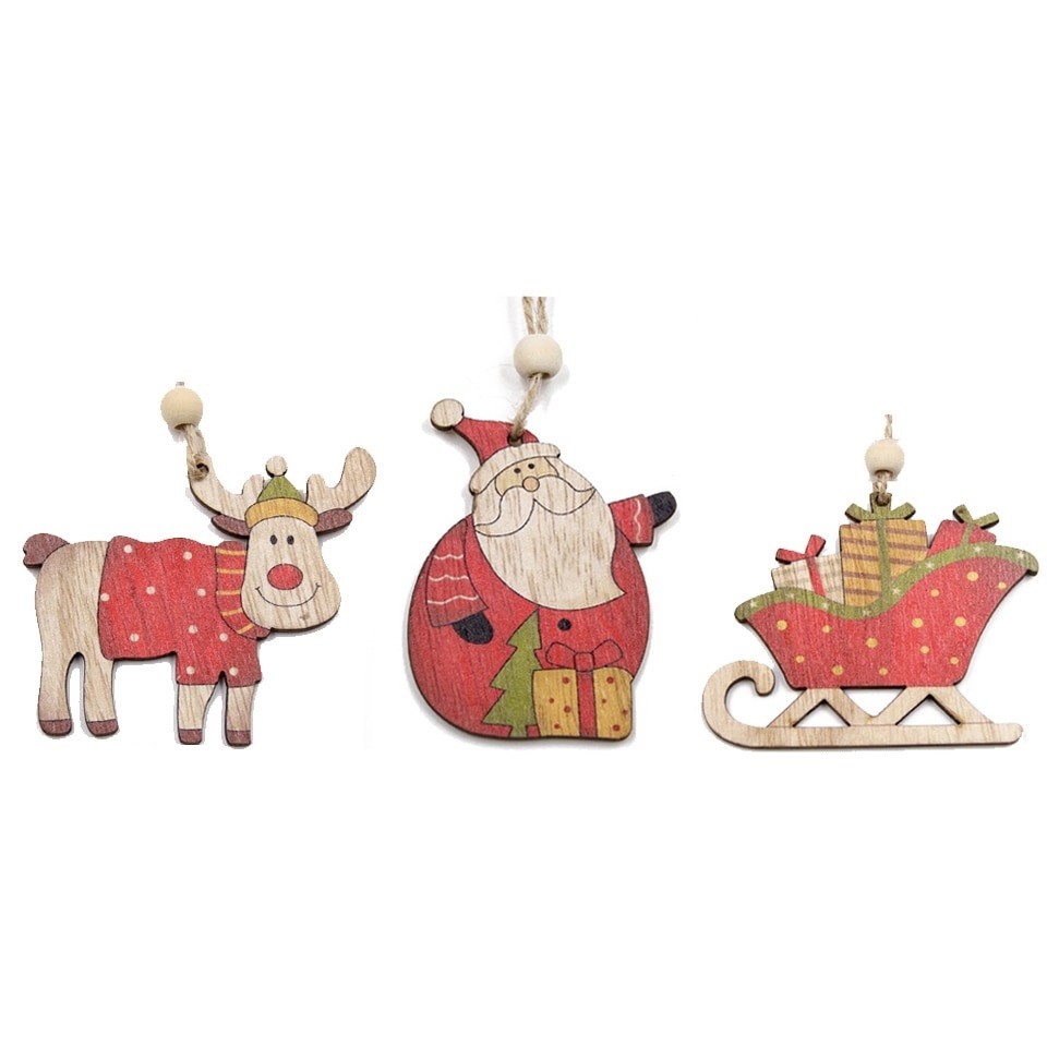 Decorações de Natal suspensas esculpidas em madeira - vários tipos.