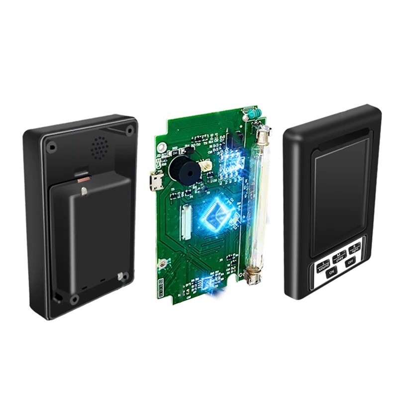 Detetor profissional para medição de radiação ionizante, raios X, beta e gama. Adequado para deteção contínua de radiação em ambientes e objetos. Alta sensibilidade e precisão na medição. Simples e fácil de usar. Os valores são exibidos num ecrã LCD legível. Utilização na indústria, medicina, astronomia, geologia e para o controlo diário das doses de radiação no local de residência ou trabalho.