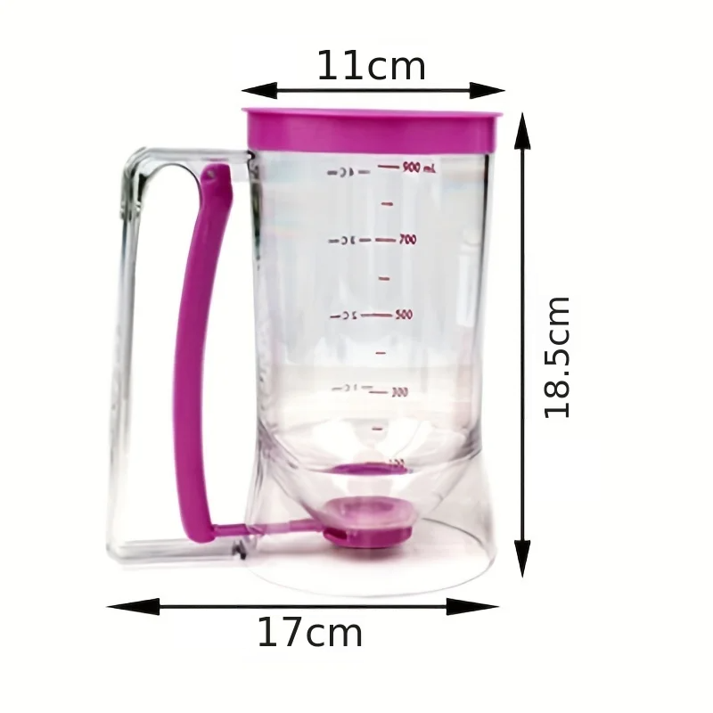Este prático dispensador de massa de 900ml é um excelente ajudante em qualquer cozinha, quer esteja a fazer muffins doces, panquecas ou a preparar panquecas salgadas. Está equipado com um mecanismo de alavanca que permite dosar a massa de forma fácil e precisa, sem a confusão desnecessária. Graças ao controlo manual, pode controlar a quantidade e a direção do despejo, o que facilita bastante o seu trabalho. As marcas de medição nas paredes do funil também permitem medir o volume com precisão.