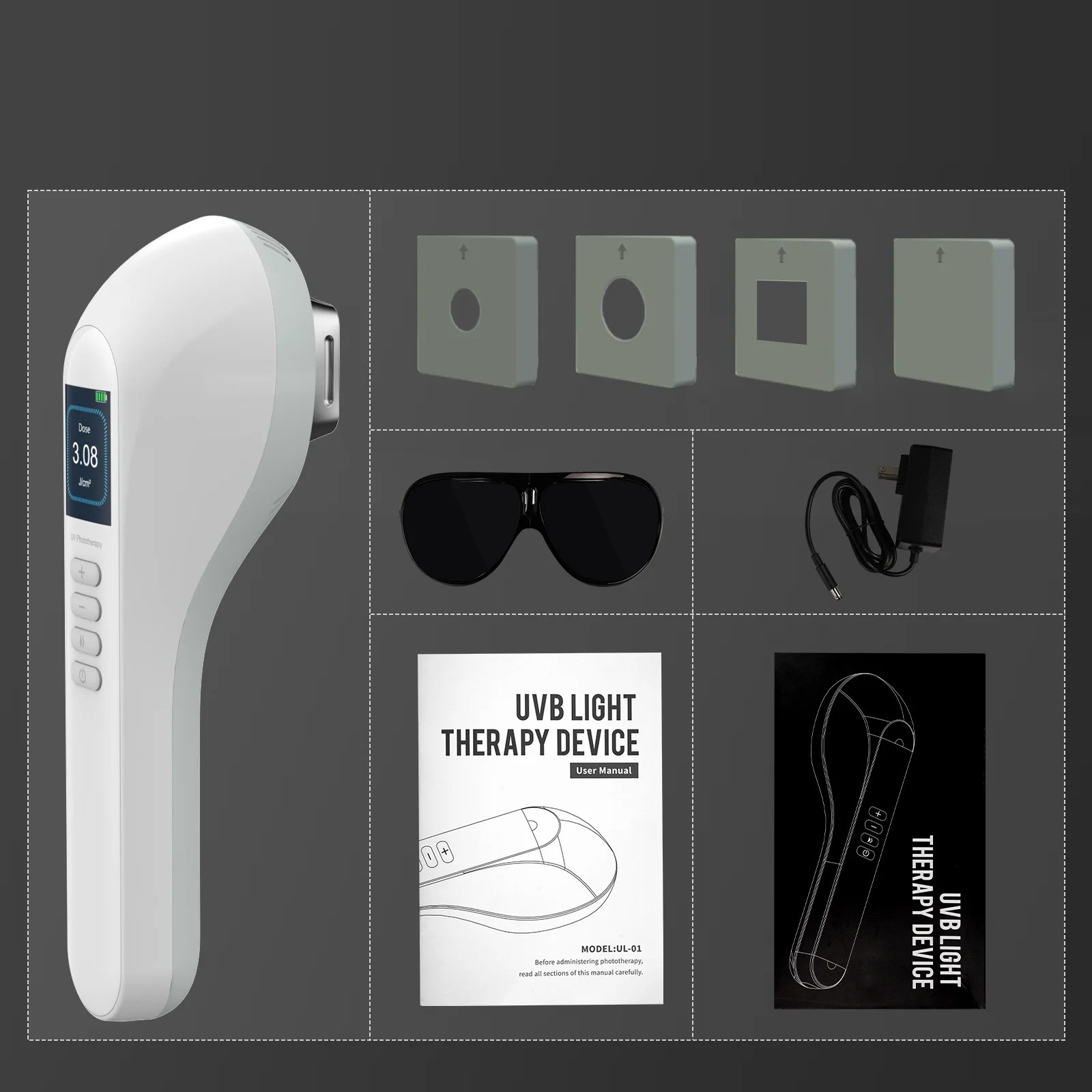 O dispositivo oferece ajustes de dosagem precisa da radiação UVB, fácil operação e recursos de segurança, incluindo óculos de proteção e filtros intercambiáveis para áreas de diferentes tamanhos. Os resultados são visíveis já após 1–2 meses de uso regular, principalmente no tratamento de despigmentações, como o vitiligo.