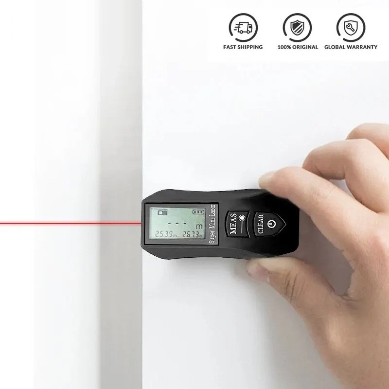 Leve e prático, o medidor de distância a laser com dimensões de apenas 70 x 34 x 19 mm oferece medições altamente precisas com uma margem de erro de ±2 mm e uma resposta rápida de até 1 segundo. É ideal para uso doméstico e profissional em renovações, medições de espaços ou trabalhos técnicos.