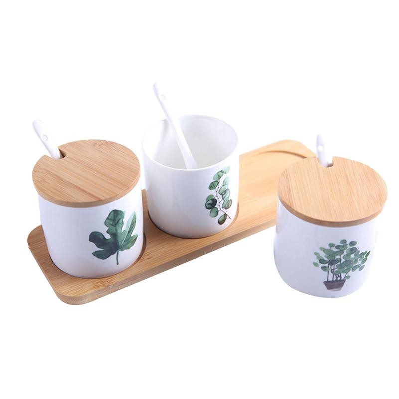 Dóza para especiarias com motivo de plantas 3 pcs