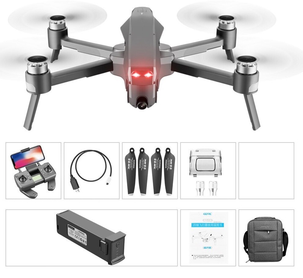 Modos de funções inteligentes: GPS, 5G, retorno, WiFi, FPV, gimbal de 2 eixos, seguimento de objetos, rotação 360°, retorno automático com um botão, voo ponto a ponto, modo sem cabeça, transmissão ao vivo através de VR, autoarranque, aterragens automáticas