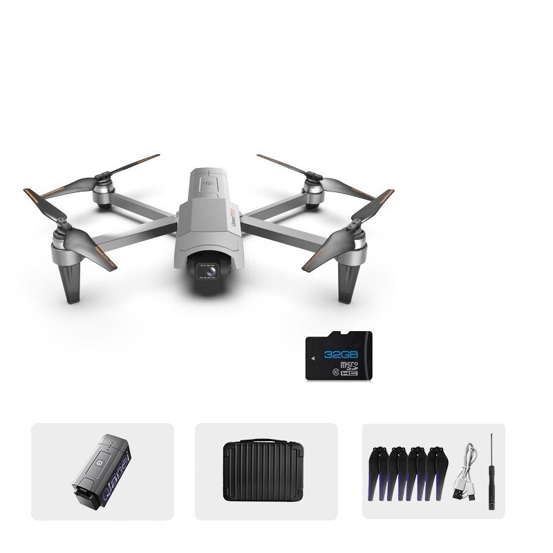 Conteúdo da embalagem: 1x dron, 1x controlador, 1x bateria, 1x bolsa, 4x hélices, 1x chave de fendas, 1x cartão Micro SD de 32 GB