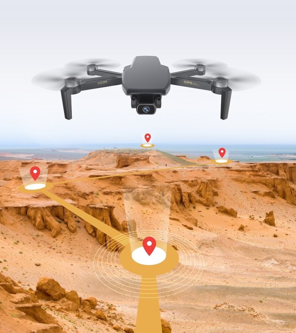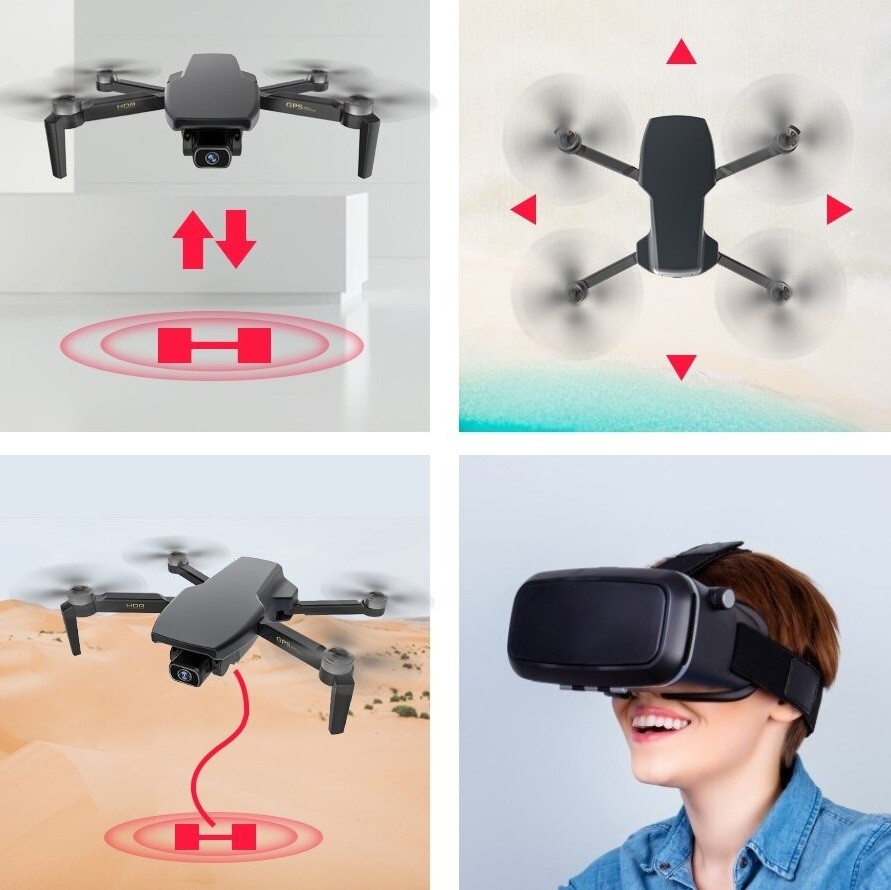 Funções inteligentes e equipamento: GPS, 5G, WiFi, voo de ponto de percurso, 3 modos de velocidade, cerca eletrónica, seguimento de objetos, luzes LED, arranque automático, aterragem automática, regresso automático com um botão, modo sem cabeça, transmissão de imagem ao vivo via VR, rotação 360°, 50x zoom