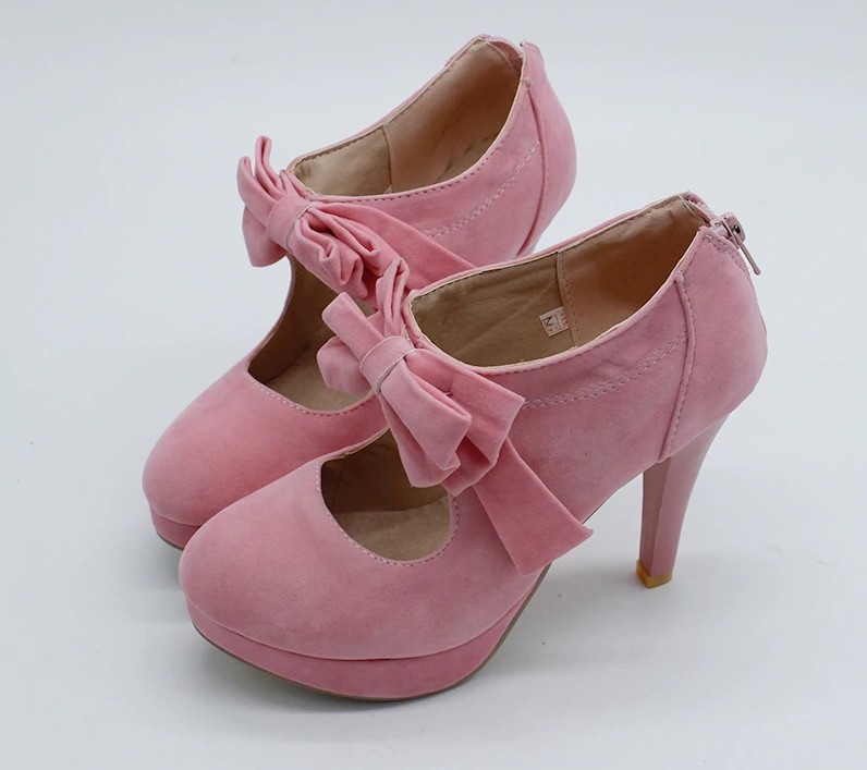 Estes elegantes sapatos de salto com laço podem ser usados em eventos sociais, bailes ou casamentos.