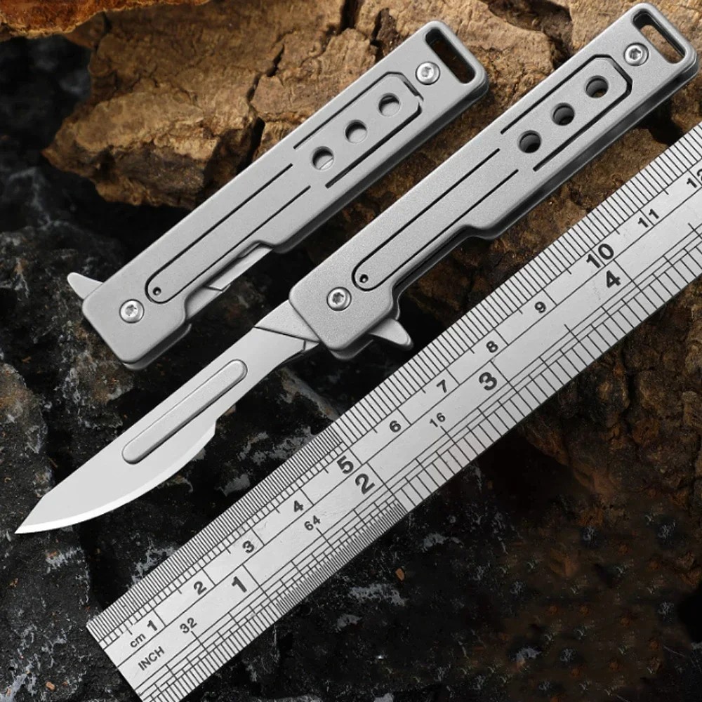 • Conteúdo da embalagem: 1x escalpel dobrável em titânio, 10x lâmina de substituição