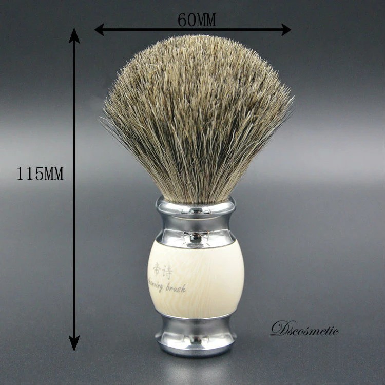 Escova de barbear profissional diâmetro da cabeça 60 mm altura 115 mm pelos de texugo base metálica com cabo de resina cuidados com a barba e cabelo
