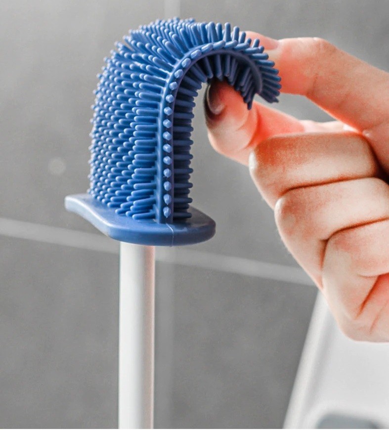 Um ajudante essencial na casa de banho, que elimina rapidamente a sujidade. A escova é feita de silicone, o que a torna flexível e permite alcançar locais de difícil acesso. No pacote está incluída uma escova para limpeza da parte exterior da sanita. Tudo se coloca no suporte de parede, que pode ser facilmente colado à parede.