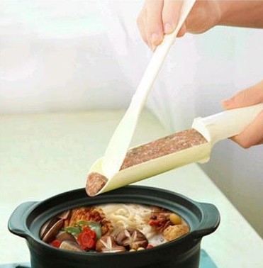 Espátula de plástico com espátula para a produção de bolinhos para sopa, almôndegas ou nhoques.