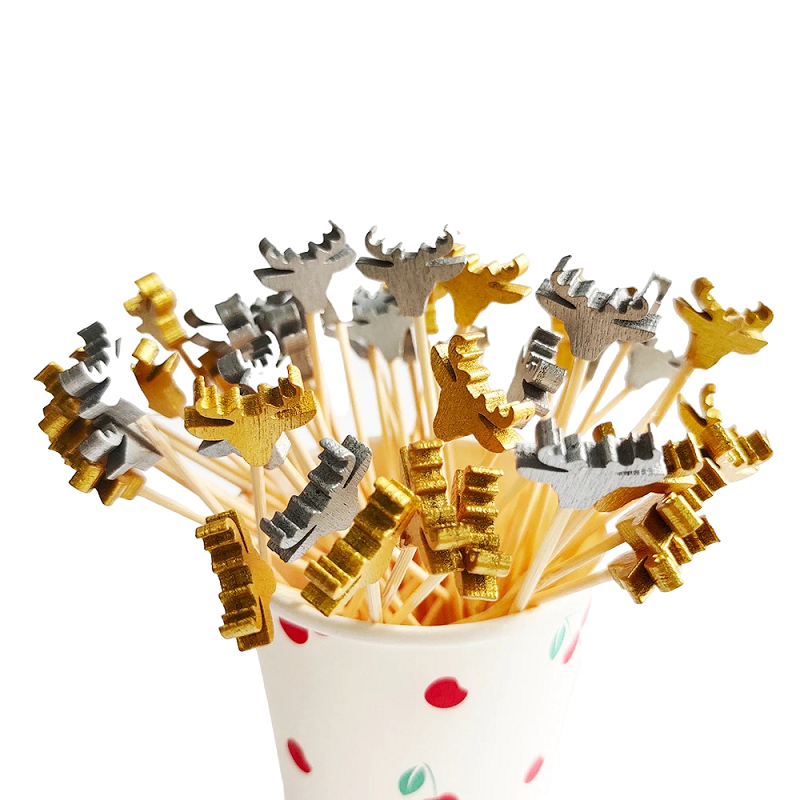 Os espetinhos de Natal são fabricados em bambu e medem 12 cm de comprimento. O conjunto de 100 unidades é fornecido numa combinação de vários padrões diferentes. São ideais para aperitivos ou apenas para decorar a mesa de Natal!