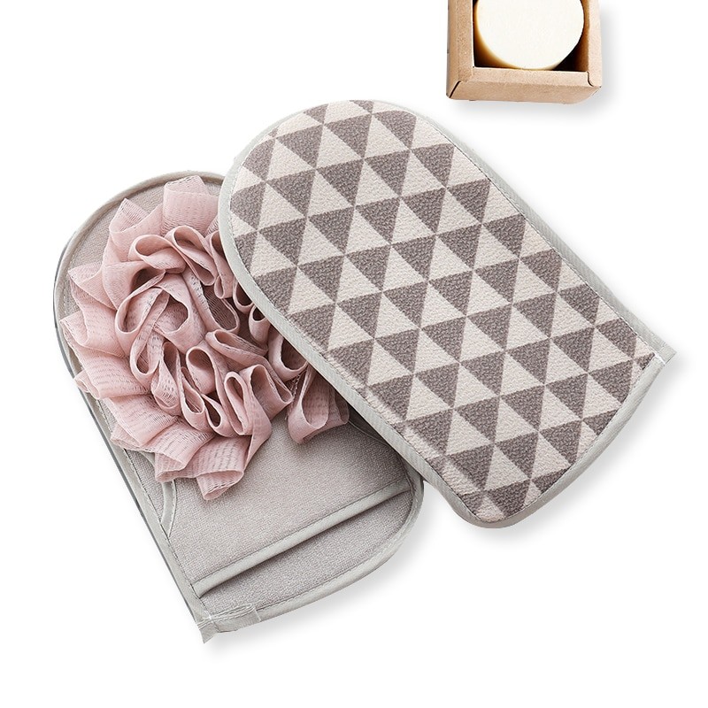 A esponja pode ser utilizada como um manguito para a mão. Tem dois lados.
