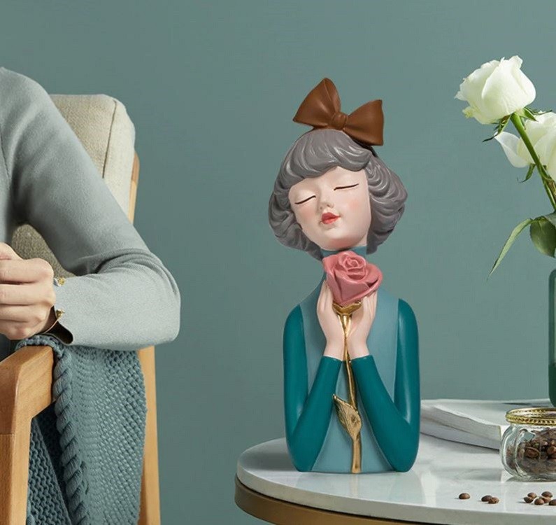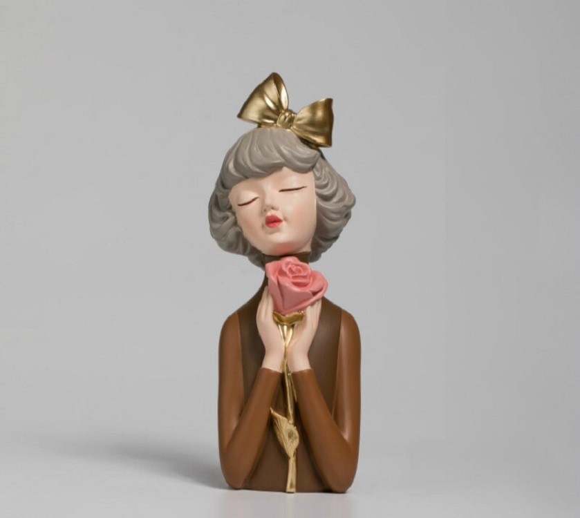 Estátua decorativa menina com rosa