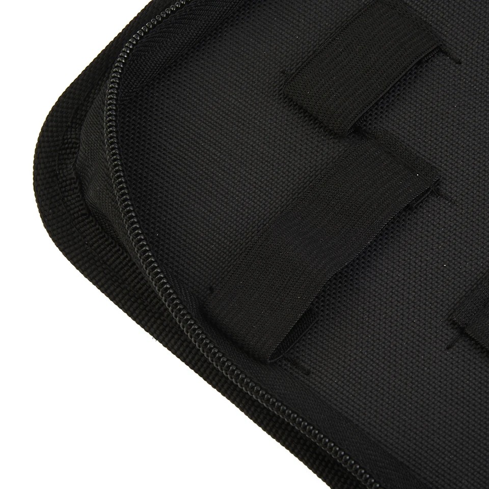 Este prático estojo é a solução ideal para armazenar de forma organizada pequenas ferramentas e acessórios. Graças às suas dimensões compactas, é fácil de transportar e cabe numa bolsa ou mochila maior. É fabricado em tecido Oxford resistente, que é complementado com um tratamento à prova de água, protegendo as ferramentas armazenadas da humidade, poeira e desgaste. A disposição interior inclui alças elásticas e compartimentos práticos, que mantêm firmemente chaves de fenda, alicates, chaves, brocas ou componentes eletrónicos no seu lugar. Com o fecho de zíper, o conteúdo está seguro contra quedas.