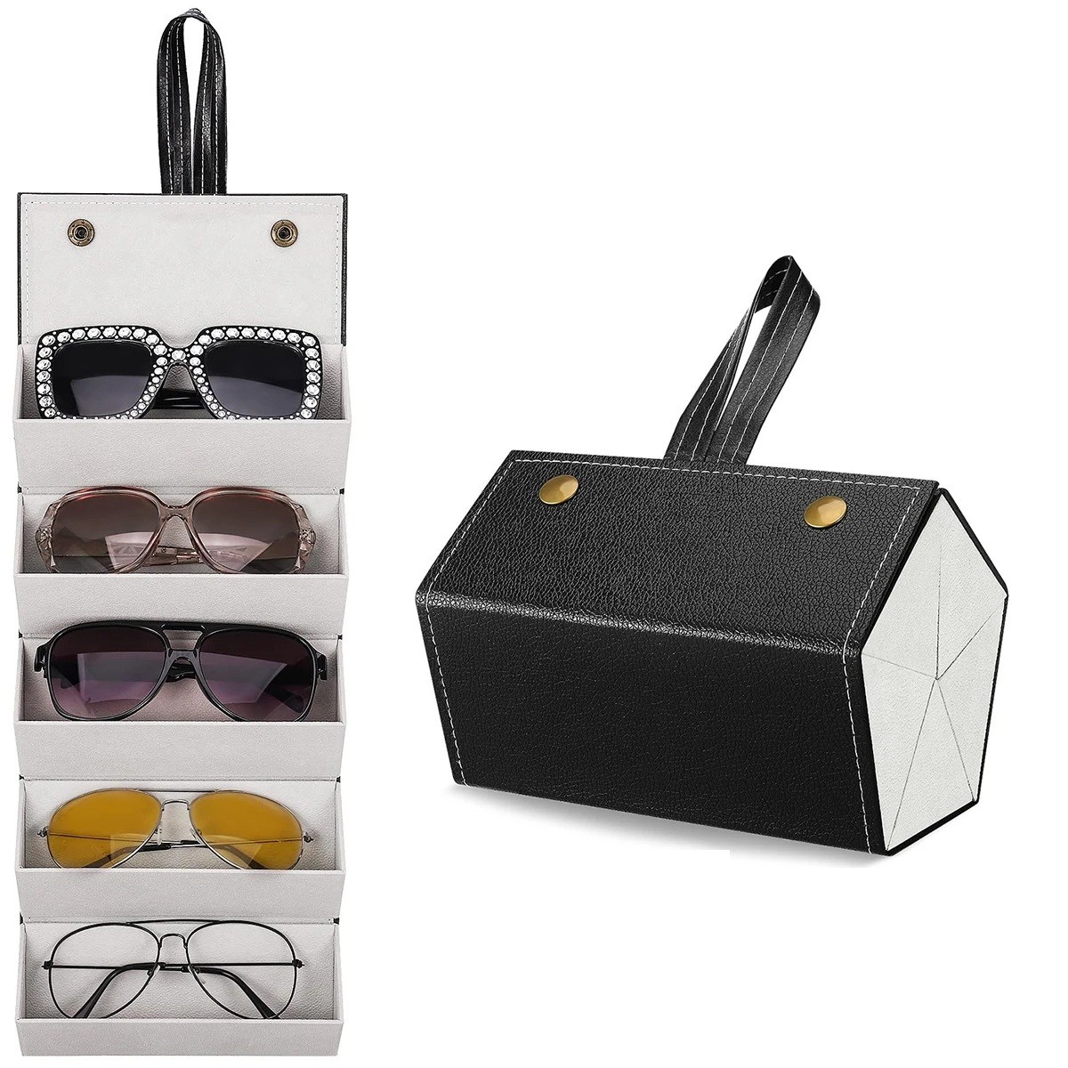 Estojo dobrável para 5x óculos 16,8 x 12,3 x 11,7 cm Estojo protetor em pele com forro em fleece Organizador para óculos de grau e óculos de sol