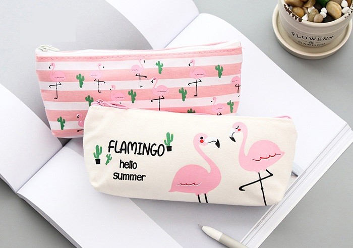 Página inicial Página inicial Tudo para crianças Material escolar Estojos e bolsas Estojo para material de escrita - Flamingos J3394