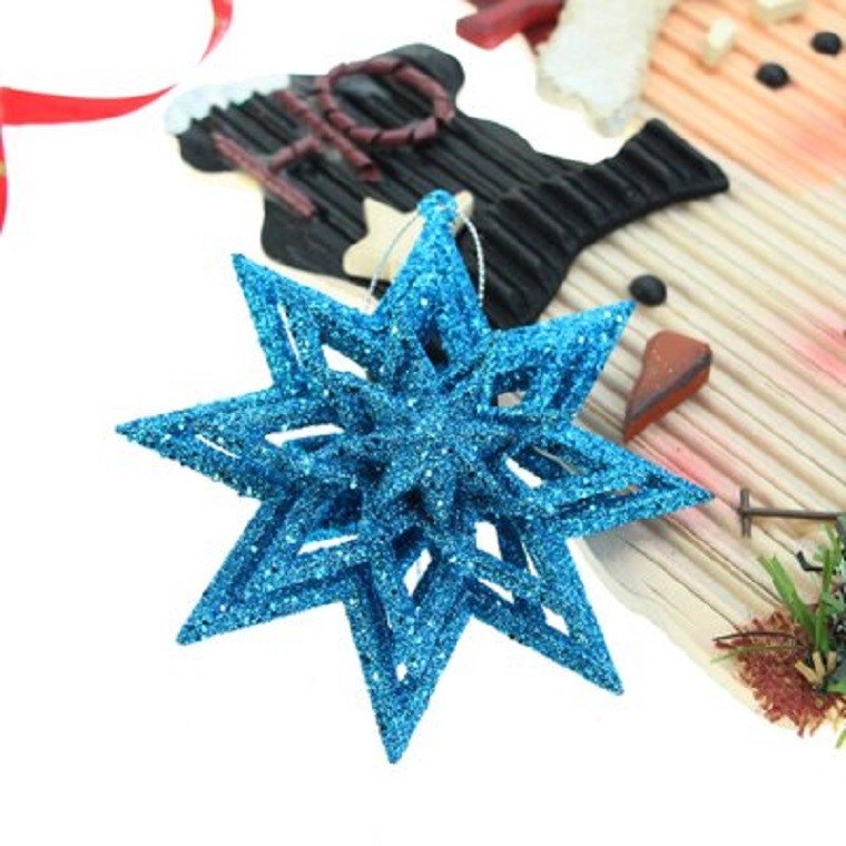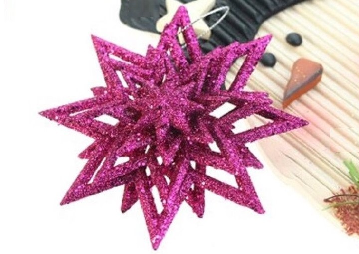 Estrela de Natal 3D suspensa com superfície brilhante de glitter.
