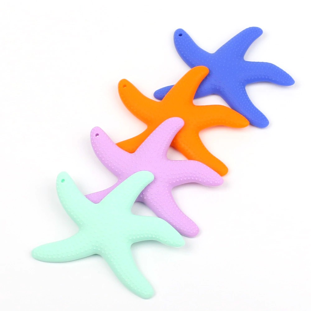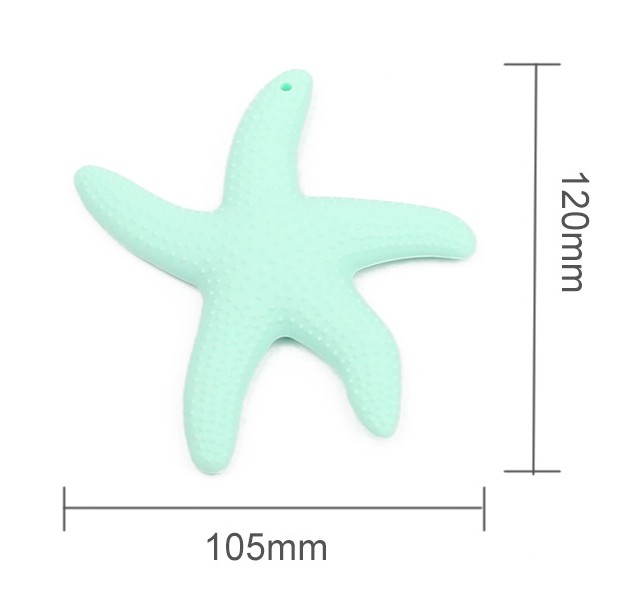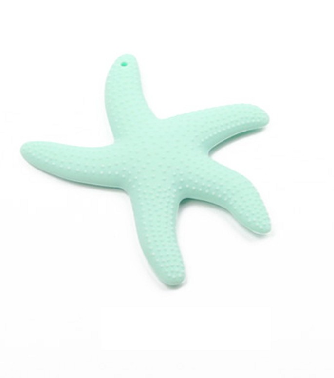 Kousador de silicone em forma de estrela do mar que se segura confortavelmente na mão da criança e ajuda no crescimento dos dentes.