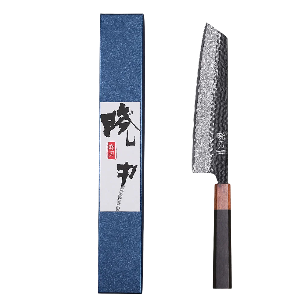 Esta faca será apreciada por todos que exigem uma ferramenta precisa com longa durabilidade e desempenho profissional. O aço VG10 oferece uma afiação e durabilidade excepcionais, enquanto o padrão damasco confere a cada peça uma aparência única. Devido à sua forma versátil, a Kiritsuke é ideal tanto para cortar carne como legumes e peixe, tornando-se a ferramenta perfeita para uso diário. A forja à mão garante qualidade e singularidade, que a produção em massa não pode oferecer. Se procura uma faca de cozinha luxuosa e de alto desempenho, a Kiritsuke é a escolha certa.