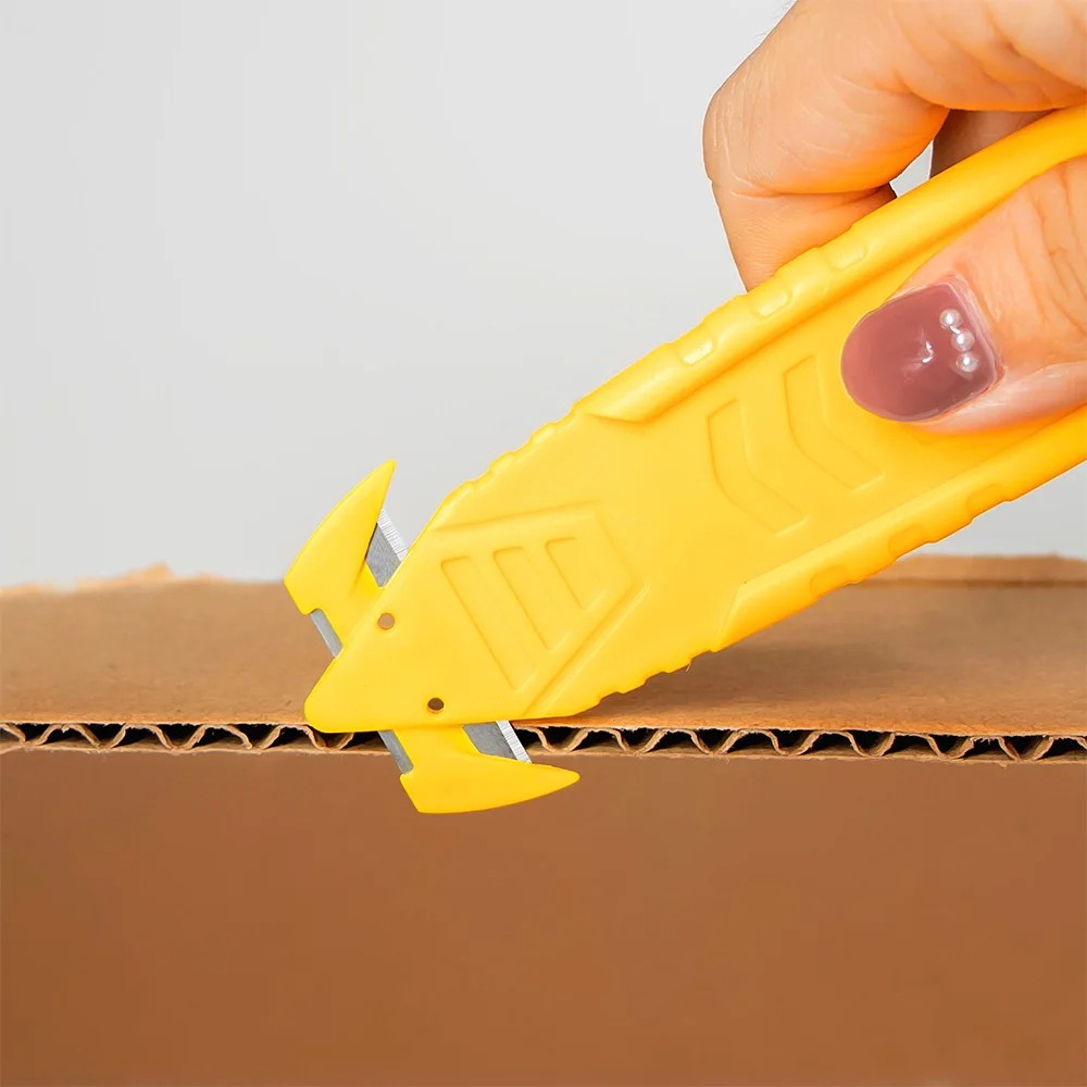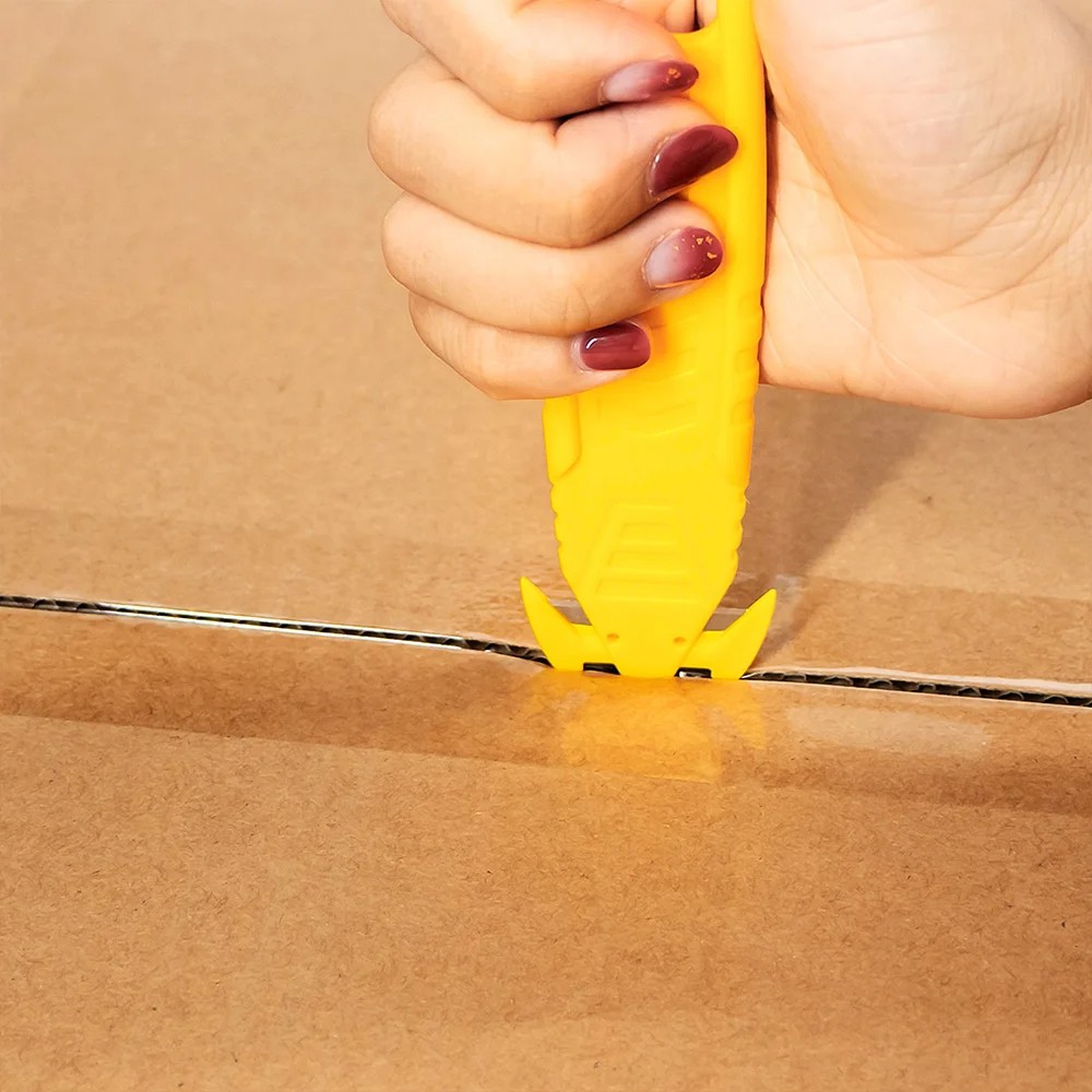 Faca de segurança para corte de caixas 14 cm Amarelo cortador ergonómico de cartão com lâmina coberta Faca de trabalho Armazém Abertura de caixas