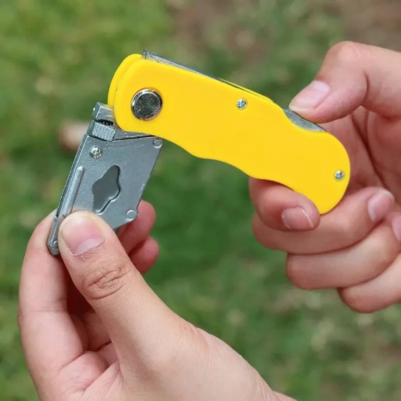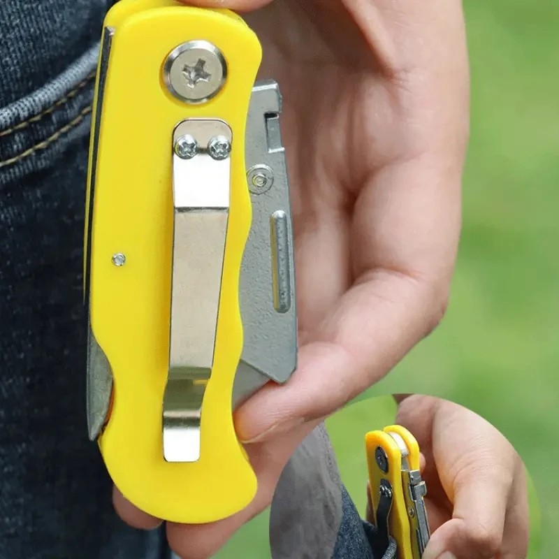 Esta faca dobrável é a ferramenta ideal para quem precisa de uma faca de trabalho fiável e afiada para tarefas diárias. É segura para transportar, fácil de manusear e pronta para uso em poucos segundos. Adequada para uso em casa, na escola, na oficina e no escritório. Graças à sua cor, é fácil de encontrar entre outras ferramentas e acessórios.
