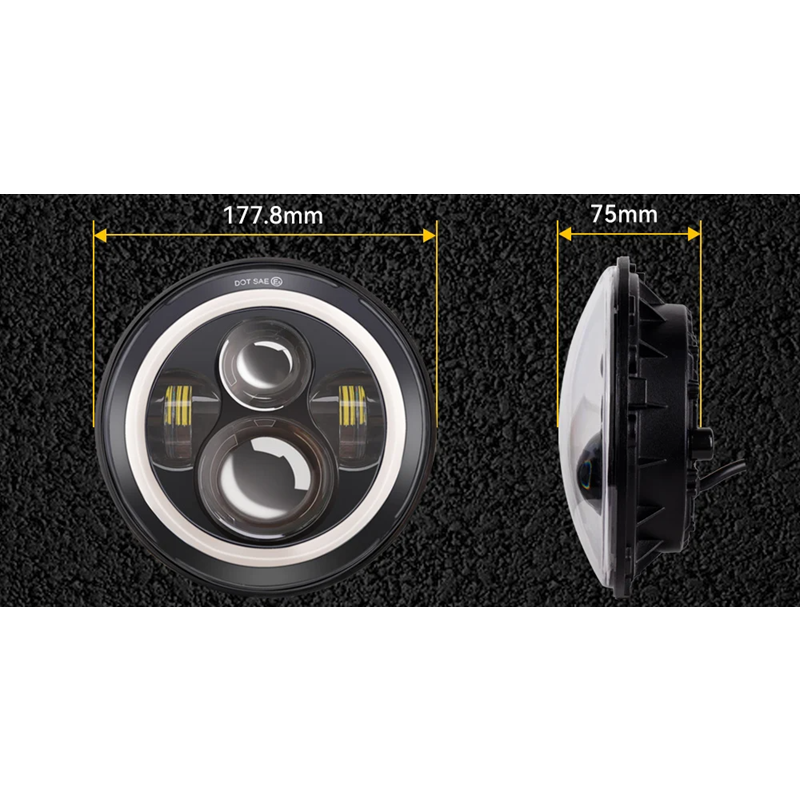• Design redondo de 7 polegadas com aparência moderna e função DRL