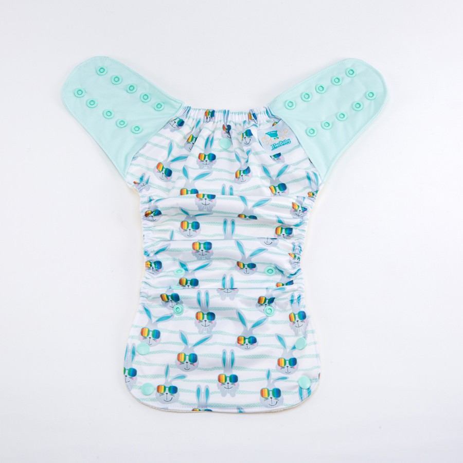 Krásné plenkové plavky s potiskem karikatury zajíčků si Vaše dítě zamiluje.