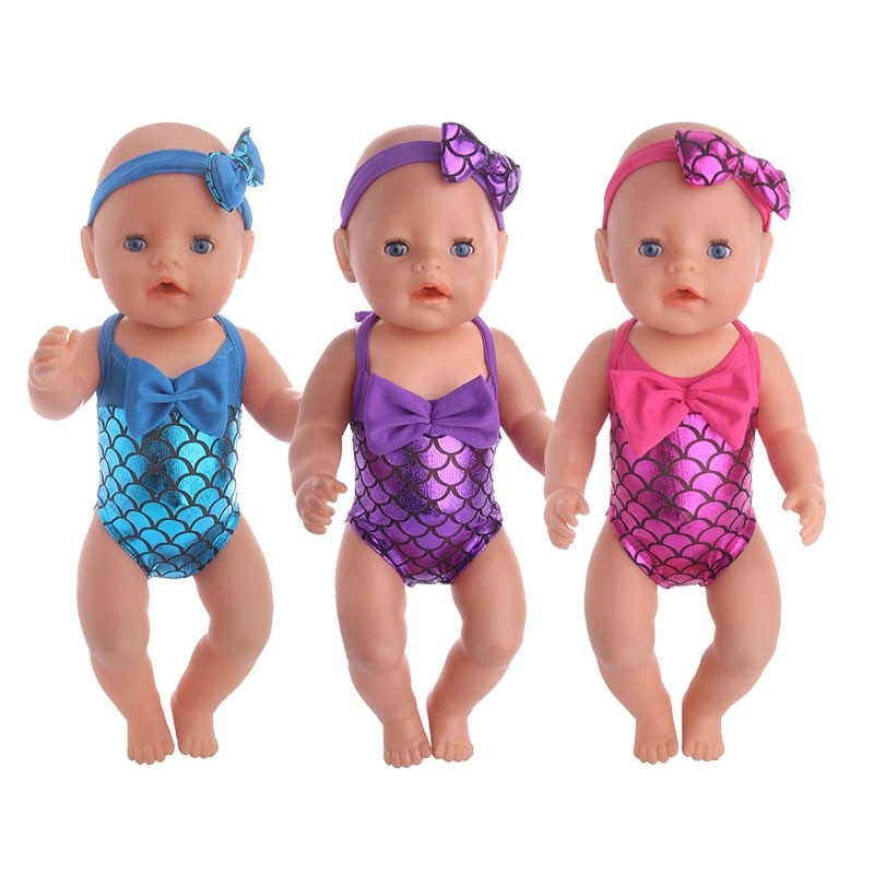 Fato de banho para boneca com padrão de sereia
