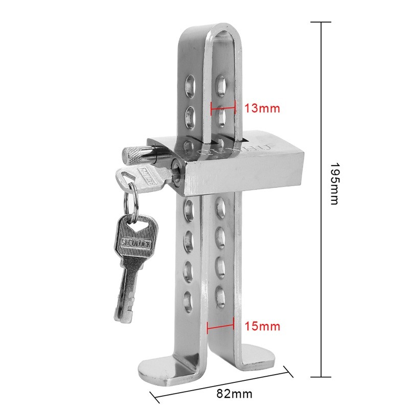 Este fecho mecânico de pedais foi concebido para uma proteção eficaz do veículo contra roubo, assegurando o pedais de travão ou embraiagem. Ao bloquear os comandos chave do veículo, impossibilita a sua partida e a condução segura do automóvel. Dimensões universais 195x82 mm permitem a sua utilização na maioria dos automóveis de passageiros. A montagem é muito simples – basta colocar o fecho no pedal, trancar e o veículo está protegido. Estrutura metálica robusta garante resistência a aberturas forçadas e danos mecânicos.