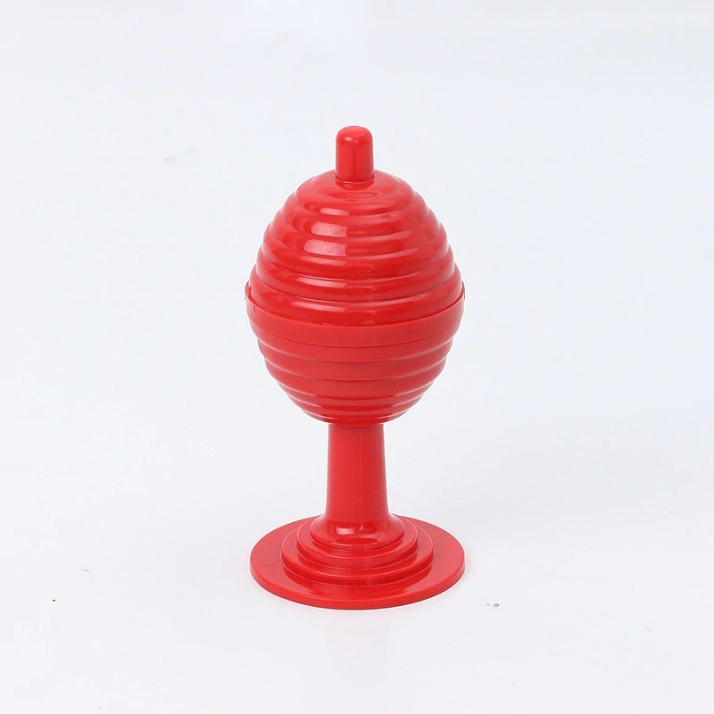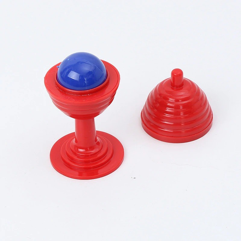 A bolinha permanece na metade superior do copo ao ser aberto.