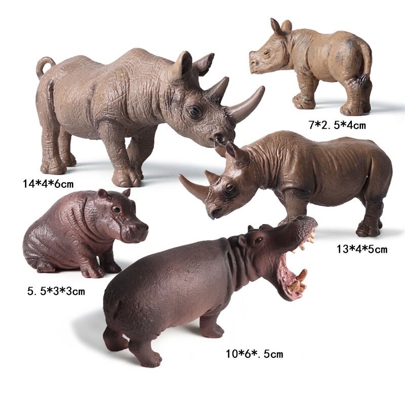 Figuras de hipopótamos e rinocerontes 5 unidades