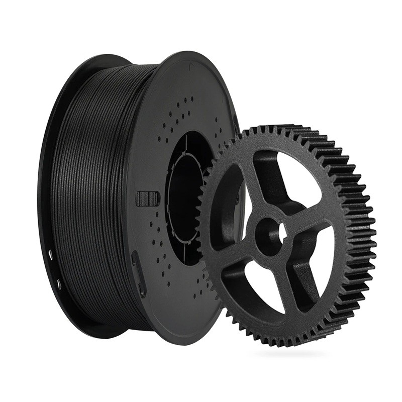 Graças às fibras de carbono, as impressões acabadas têm um peso inferior em comparação com peças semelhantes em PLA puro, o que é vantajoso para construções leves e componentes aerodinâmicos. Ao mesmo tempo, o filamento resiste a temperaturas operacionais mais elevadas, tornando-o adequado para condições mais exigentes.