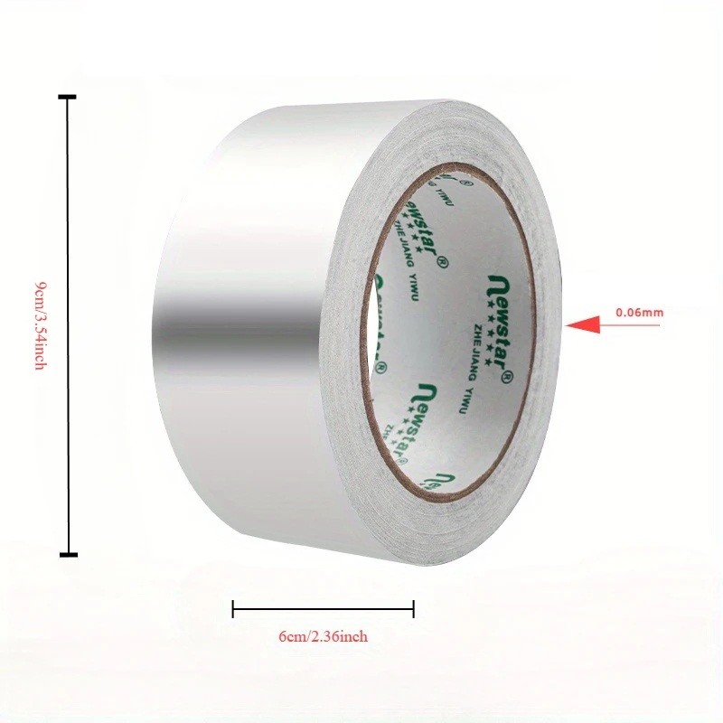 Fita adesiva de alumínio 10 m x 60 mm Resistente ao calor Resistente à água Reparações de isolamento e tubagens Superfície reflexiva Uso industrial e doméstico