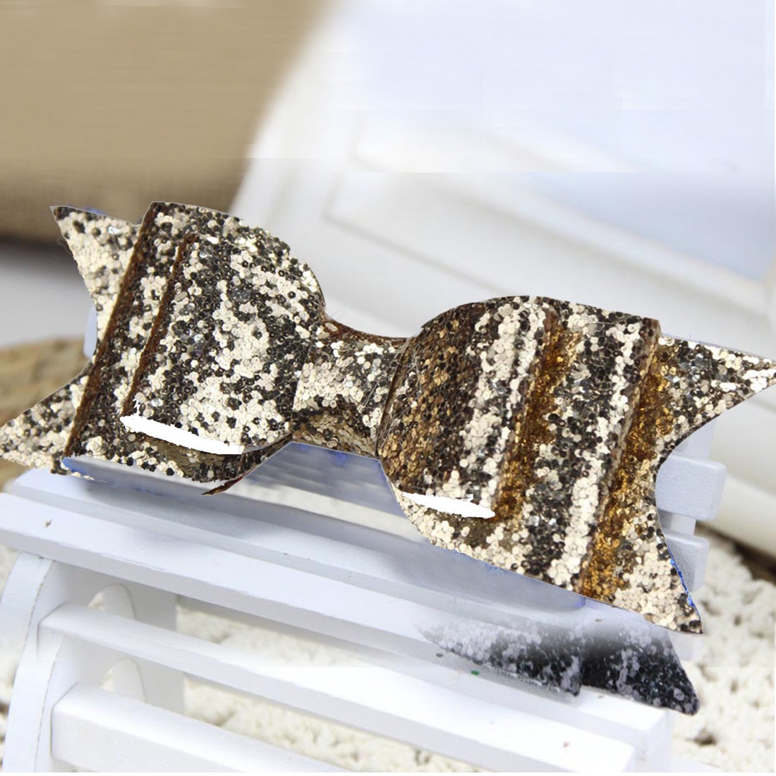 Fivela de cabelo com laço brilhante é um acessório encantador e bonito.
