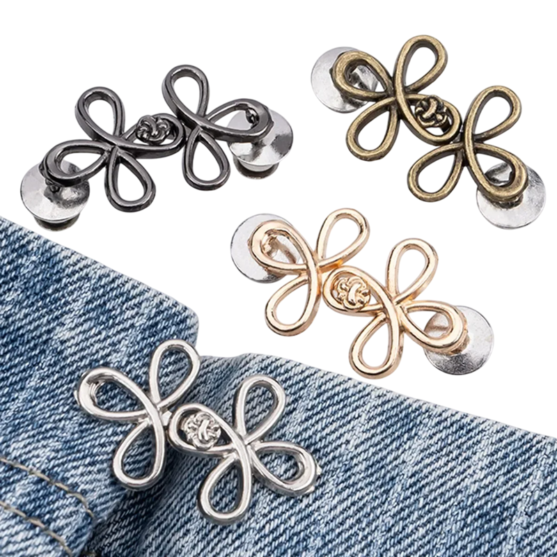 Fivela de metal ajustável em forma de trevo para apertar calças sem costura Spona estilosa para jeans Saias Fecho rápido Decoração