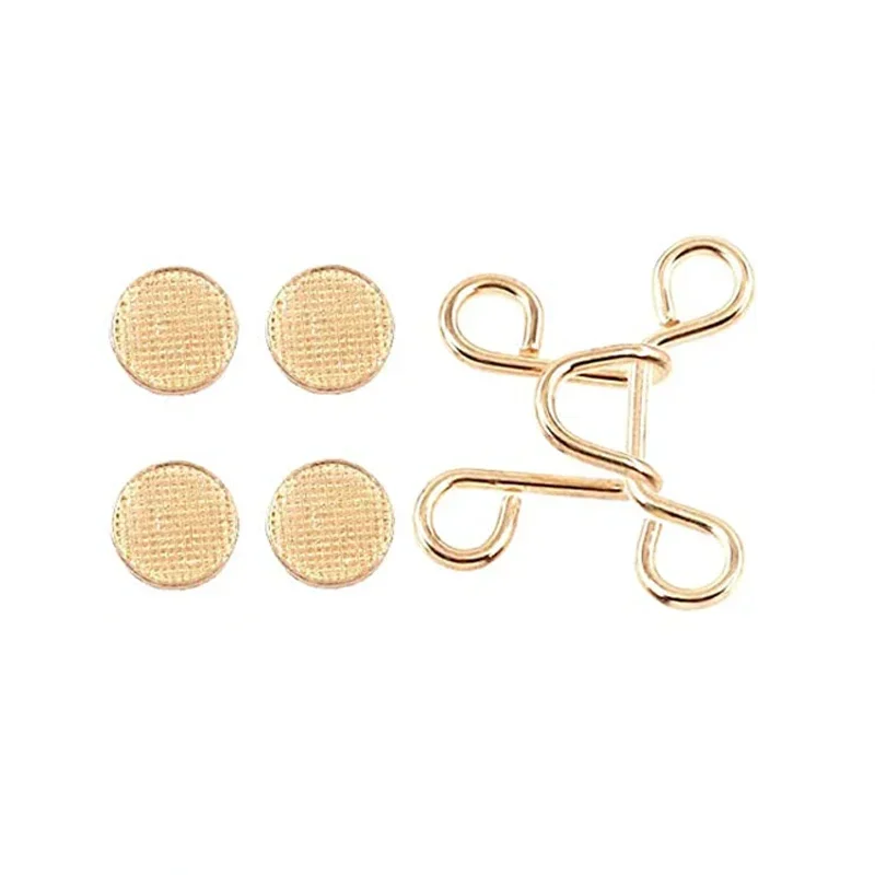 Fivela prática com alfinetes para um ajuste fácil e firme da cintura em calças ou saias sem costura, ideal para ajustes rápidos de vestuário. Descrição completa