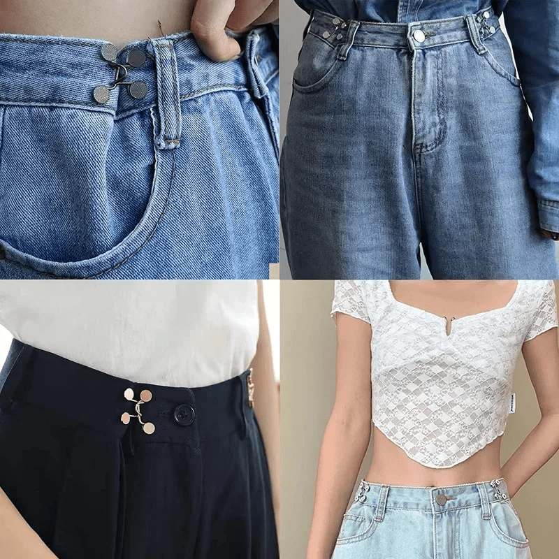 Esta fivela metálica ajustável de 32 mm foi concebida para um ajuste eficaz e rápido da cintura sem necessidade de costura ou alterações na roupa. Através dos alfinetes integrados, segura com segurança o tecido e permite uma redução imediata da circunferência da cintura em calças, saias, calções e outras peças de vestuário. A sua construção metálica resistente garante durabilidade e longa vida útil, enquanto o design compacto não sobrecarrega a aparência do seu visual. É ideal para uso diário, mas também para períodos de alteração de peso ou gravidez. Fácil de manusear e com resultados imediatos, faz desta fivela um auxiliar indispensável.