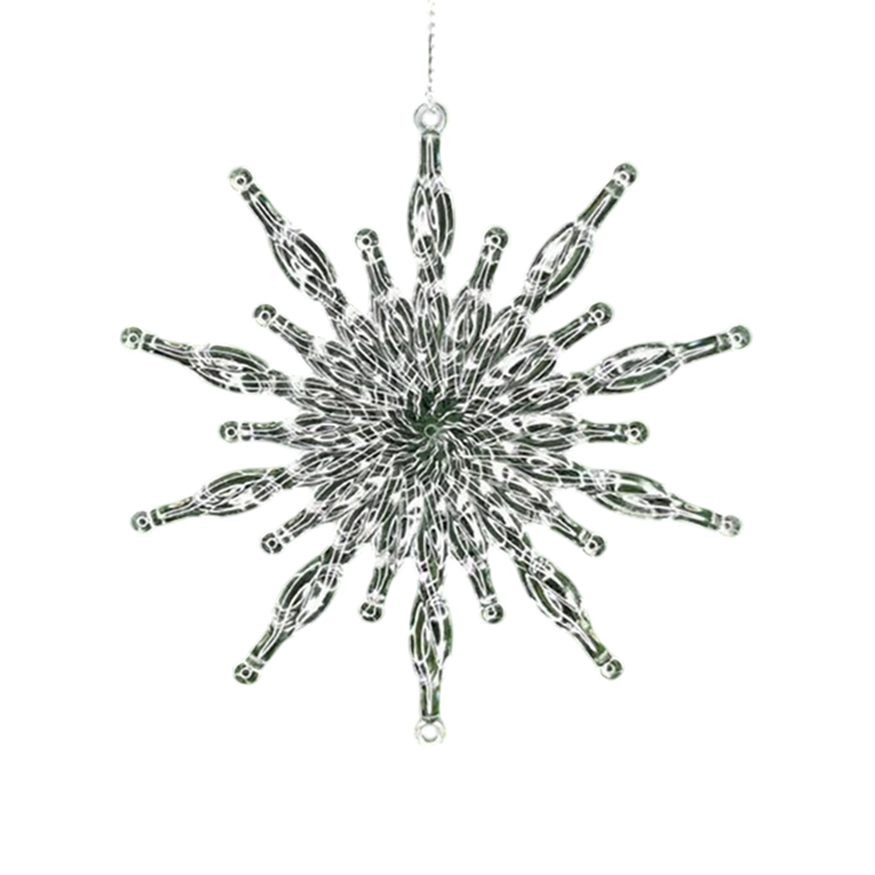 Flocos suspensos em acrílico transparente com um elegante design em cristal trarão um encanto invernal a qualquer decoração festiva ou doméstica. Descrição completa