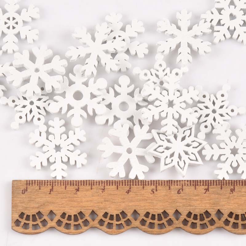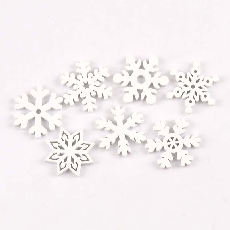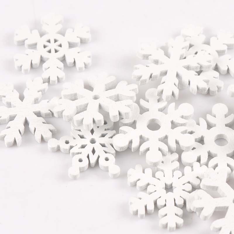 Sada de pequenos flocos de Natal em madeira para decoração.