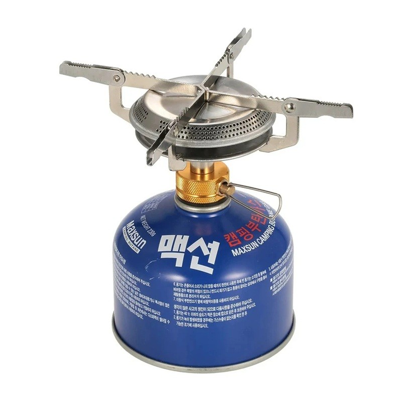 Fogão portátil ultraleve com adaptador para botija de gás. Ideal para cozinhar ao ar livre durante acampamentos, caminhadas ou viagens na natureza. Descrição completa